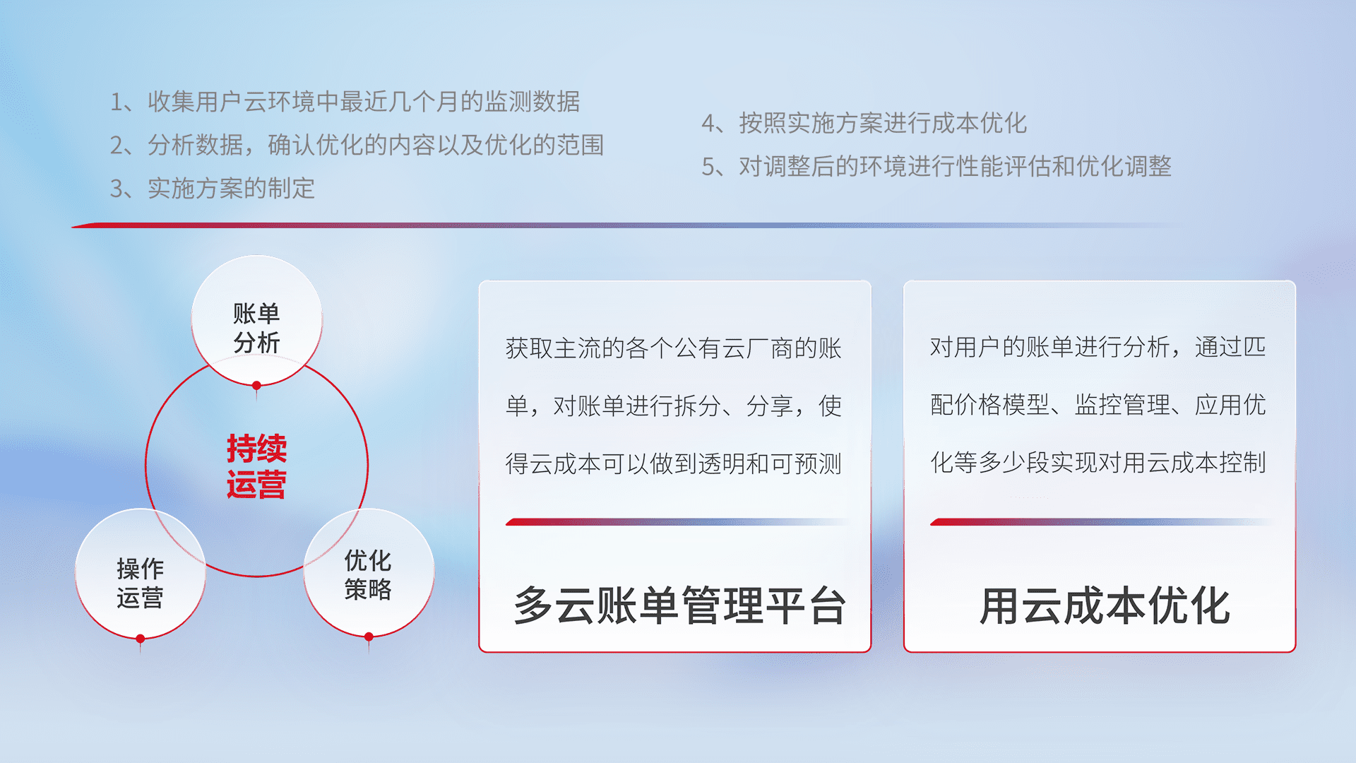监控业务系统资源开销,,对资源的消耗精确计量,,实现费用的透明化管理,,,,不断提升资源使用率,,,调整资源购买方式,,,降低资源费用成本,,,,用云成本可预测、、、、用云费用可优化,,,,云资源配额有据可依。。